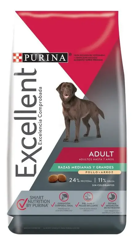PURINA® EXCELLENT™ le ofrece a tu perro una nutrición que lo mantenga sano y activo. Con proteínas de alta calidad, además de la inclusión del prebiótico natural que colabora con una buena salud digestiva.