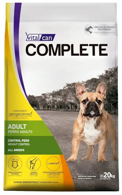 Para controlar el peso en perros adultos (a partir de 1 año). Calidad Estándar. Silueta ideal. El pelo brillante. Las heces más firmes.