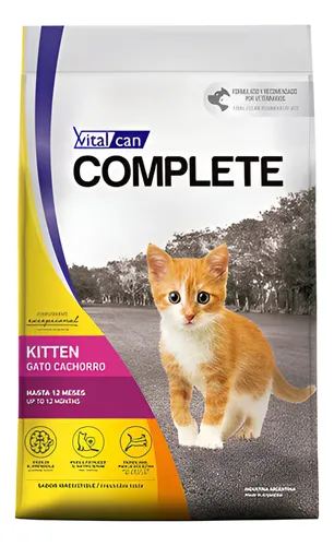 Posee todas las proteínas, vitaminas y minerales para cubrir los requerimientos de su gatito (menores a 1 año) Calidad Standar