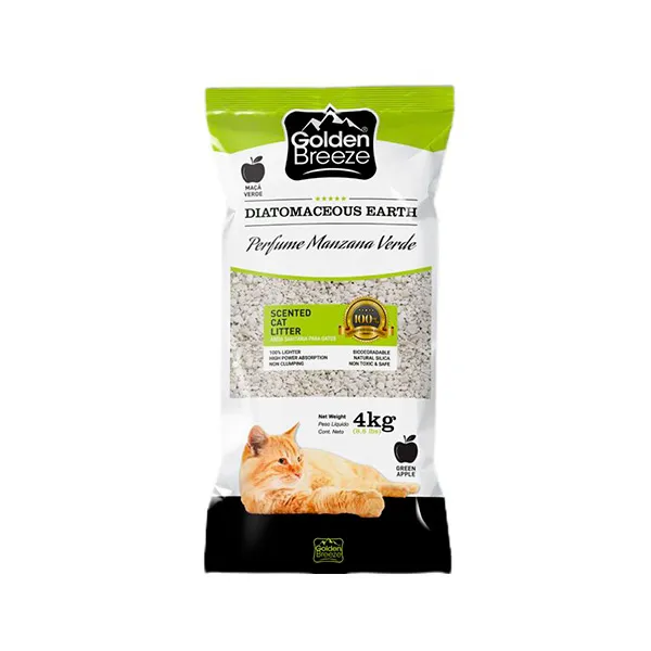 Las piedras sanitarias diatomea Golden Breeze aroma Manzana (4kg – 16kg) son un sustrato ecológico para gatos hecho de diatomita y arcilla natural, diseñado para una absorción superior de líquidos y olores. Son ligeras, 100% naturales, libres de tóxicos y biodegradables, con una suave fragancia a manzana verde
